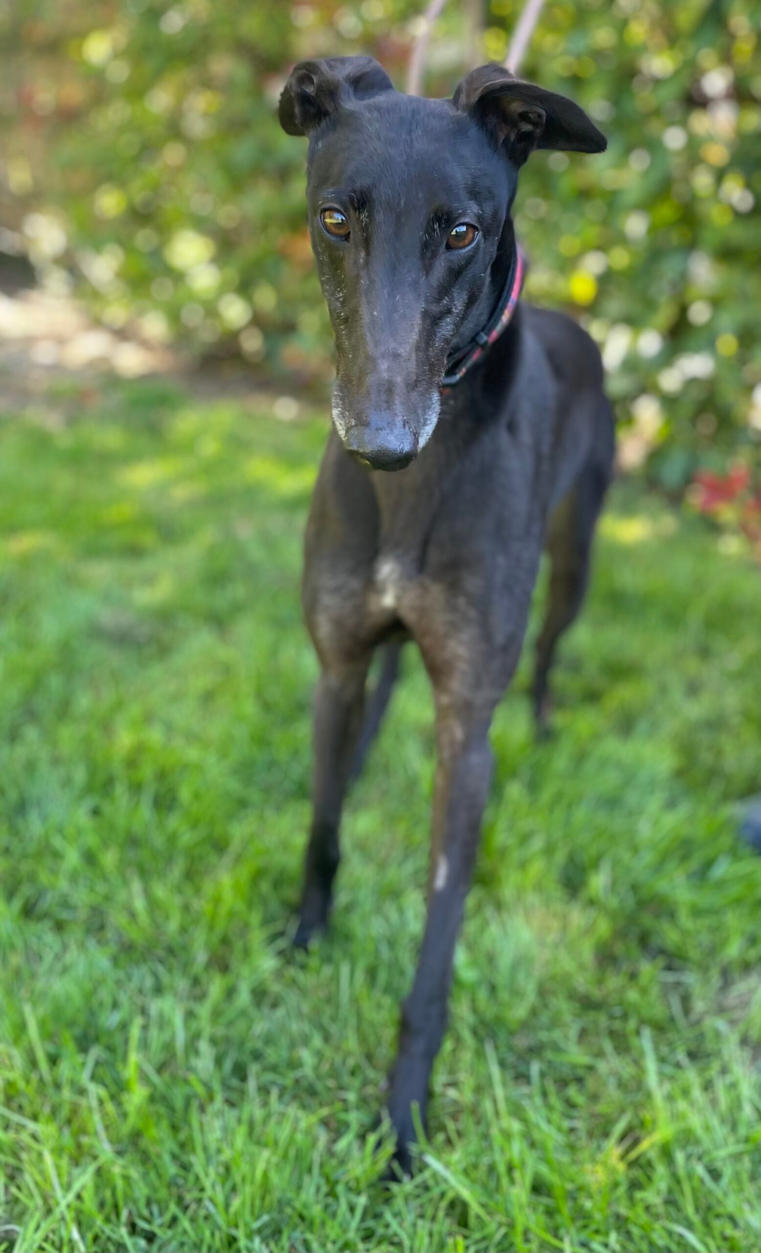 Ritz is a small slender boy with beautiful soulful eyes.  He does need some work on exposure to life outside the kennels and our local woods as he can be a little over-excited, but it’s very early days for him. He also needs a bit more fattening up but all in all he’s been lovely with his kennel mate and polite in the kennels so we have high hopes for this little boy.